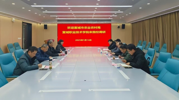 1月14日,宣城市農(nóng)業(yè)農(nóng)村局副局長、市委農(nóng)辦專職副主任鮑猛、宣城市農(nóng)業(yè)農(nóng)村局經(jīng)改科科長孟超峰,宣城職業(yè)技術(shù)學(xué)院建筑藝術(shù)系黨總支書記茆欣荷一行五人到安慶職業(yè)技術(shù)學(xué)院調(diào)研鄉(xiāng)村振興學(xué)院工作。安慶職院黨委副書記李克讓,安慶市農(nóng)業(yè)農(nóng)村局副局長楊傳斌熱情接待,調(diào)研組一行。