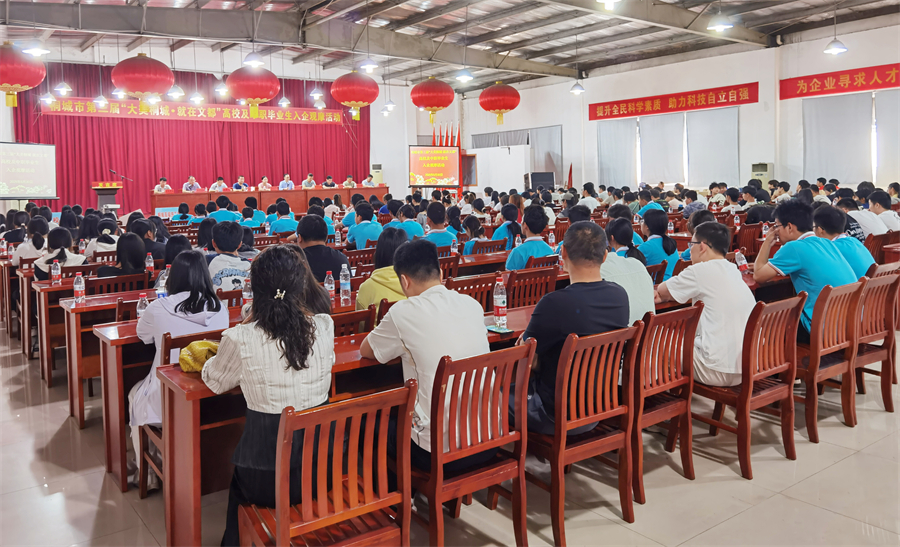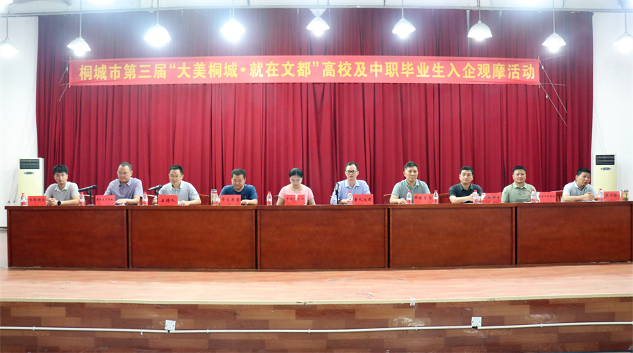 5月30日,桐城市第三屆“大美桐城?就在文都”高校及中職畢業(yè)生入企觀摩啟動儀式在桐城海峽高級技工學(xué)校隆重舉行。桐城市人力資源和社會保障局、市委人才辦,市教育局,市交通局等部門負責(zé)人,以及桐城師范高等??茖W(xué)校、江淮工業(yè)學(xué)校、桐城海峽高級技工學(xué)校、中華職校、文都職校等四所職(技)校部分師生參加啟動儀式。儀式由市人才綜合服務(wù)中心主任章杰主持,市人社局副局長章文斌致辭并宣布活動開始。