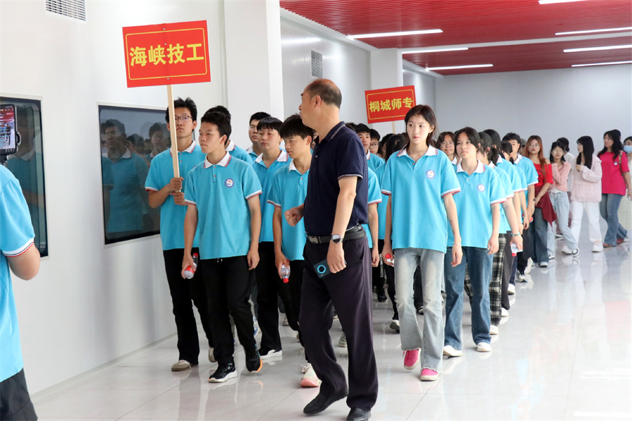 隨后高校、職校學(xué)生赴金科印務(wù)、大鼎智能裝備等重點工業(yè)企業(yè)實地觀摩。活動中,學(xué)生們深入企業(yè)生產(chǎn)一線,觀摩智能化生產(chǎn)線,聆聽技術(shù)人員細致講解,了解產(chǎn)品制造流程與技術(shù)創(chuàng)新,感受企業(yè)文化與生機。家鄉(xiāng)桐城發(fā)展的蓬勃生機和火熱場景給同學(xué)們留下了深刻印象。