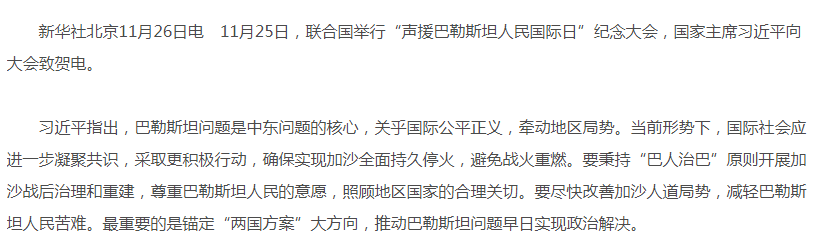 習(xí)近平向“聲援巴勒斯坦人民國際日”...