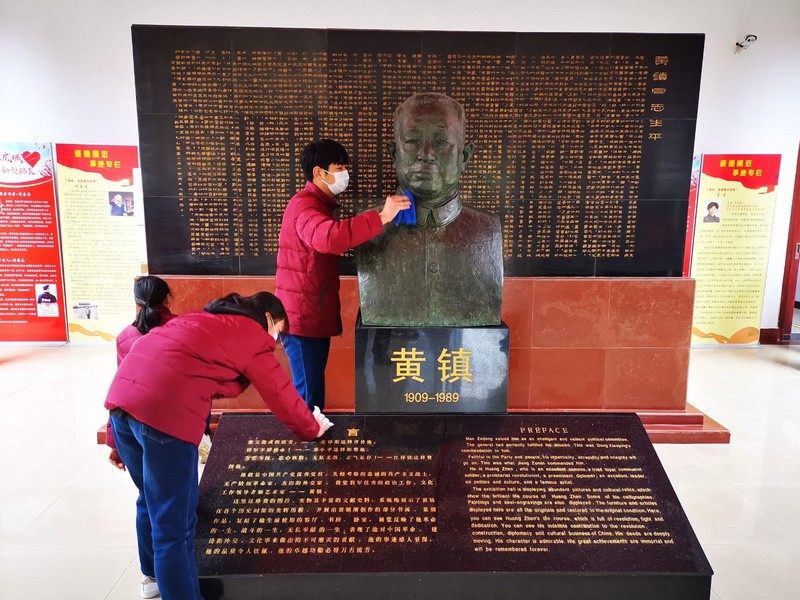 參觀結(jié)束后,同學(xué)們拿起勞動(dòng)工具,自發(fā)的打掃陳列館的衛(wèi)生?!拔以诓潦命S鎮(zhèn)爺爺?shù)乃芟駮r(shí),覺得黃鎮(zhèn)爺爺在注視著我,他勉勵(lì)我要爭做時(shí)代雷鋒?!眲⒖X同學(xué)如是說。