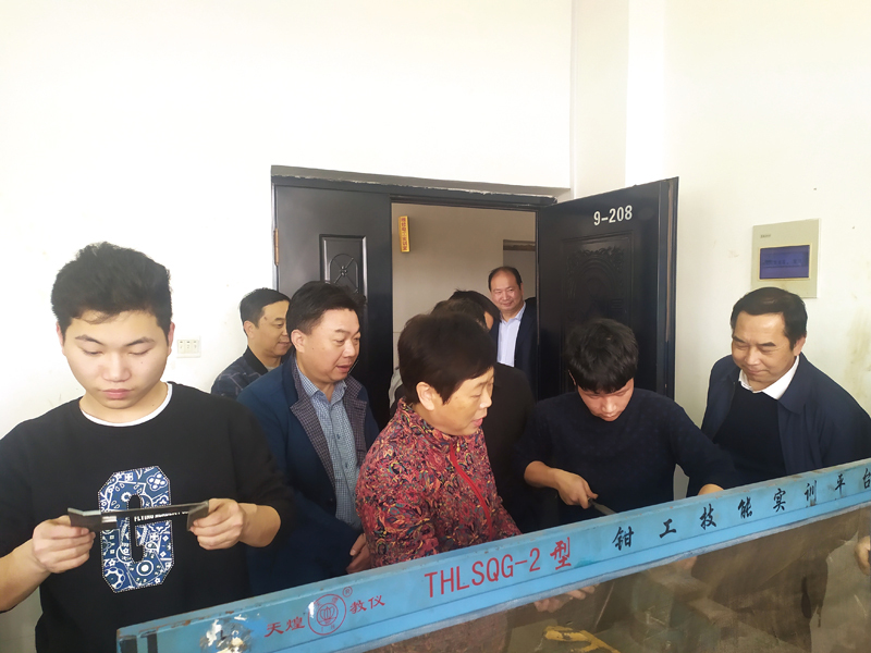 黃銀枝一行深入教學實訓基地,實地了解學校辦學規(guī)模、基礎設施、專業(yè)設置、實習實訓、招生就業(yè)、教師隊伍等情況,觀看學生實操課,了解技能人才培養(yǎng)等情況。