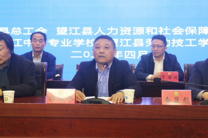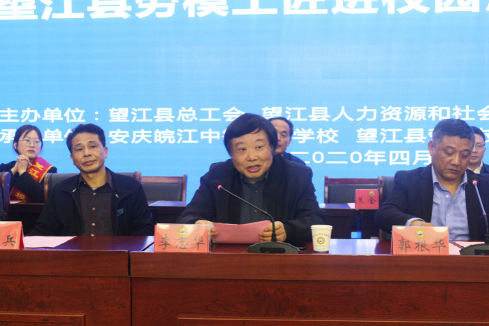4月21日,望江縣勞模、工匠進校園活動總結(jié)大會在安慶皖江中等專業(yè)學(xué)校舉行。望江縣總工會常務(wù)副主席李志華、副主席郭根華,縣人社局機關(guān)工會副主席廖一兵,縣教育局職成股查顯彪等參加了會議。會議還邀請了活動協(xié)辦學(xué)校代表太慈中學(xué)校長曹海波、全國巾幗建功標(biāo)兵張玉紅、安徽省“五一巾幗標(biāo)兵”金長霞、安慶市勞模鮑成勝、檀金燕等出席。會議由縣總工會副主席郭根華主持,學(xué)校黨支部第一書記游沖在會上作了致辭。
