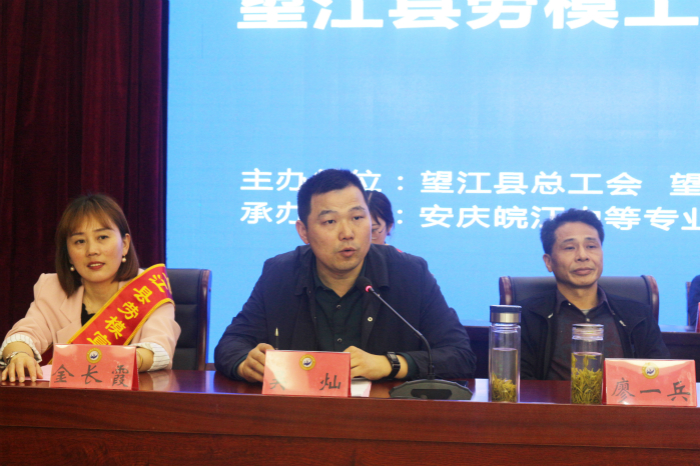 活動承辦單位董事長吳燦對活動開展過程中,主辦單位對學(xué)校的信任和悉心指導(dǎo),各初中學(xué)校給予的支持和幫助,參與巡講的全體勞模、工匠大師、先進工作者及全體宣講團成員的辛勤努力表示最衷心的感謝。他指出,活動的舉辦是深入貫徹落實習(xí)近平總書記關(guān)于弘揚勞模精神、勞動精神、工匠精神的講話精神和對職業(yè)教育工作作出重要指示的重要舉措,是引導(dǎo)廣大青年學(xué)生傳承和弘揚“精益求精、持之以恒、愛崗敬業(yè)、守正創(chuàng)新”的“勞模工匠精神”,學(xué)習(xí)勞模工匠,懷匠心、踐匠行、出匠品、做匠人的重要平臺和載體。他表示,為配合“勞模工匠進校園”活動持續(xù)開展,形成常態(tài)化,學(xué)校將積極加強規(guī)劃統(tǒng)籌、政策統(tǒng)籌、資源統(tǒng)籌,建設(shè)“勞模工匠精神教育基地”和望江縣勞動實踐基地,基地建成后將向全縣中小學(xué)生免費開放,在校園內(nèi)厚植勞模、勞動、工匠文化,引導(dǎo)社會轉(zhuǎn)變觀念,弘揚勞動光榮、技能寶貴、創(chuàng)造偉大的時代風(fēng)尚,營造人人皆可成才、人人盡展其才的良好環(huán)境,為技術(shù)技能人才成長創(chuàng)造更好的社會氛圍。引領(lǐng)廣大師生樹立職業(yè)理想,增強職業(yè)信心,堅守職業(yè)理想,苦心鉆研技術(shù),潛心增長技能,努力成長為一名新時代的勞模和大國工匠,用技能來報效祖國,回報家庭和社會,用技能實現(xiàn)成長成才,成就精彩人生。
