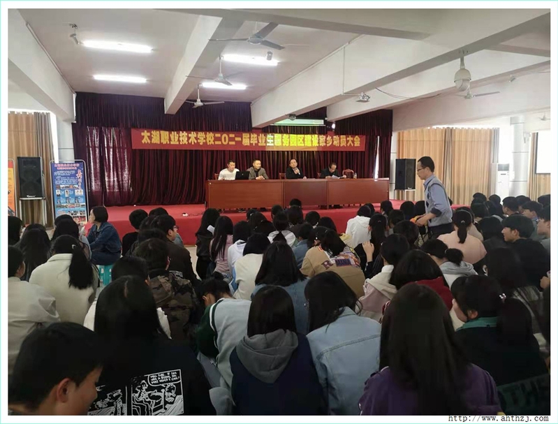 4月16日下午2點(diǎn),太湖職業(yè)技術(shù)學(xué)校在實(shí)訓(xùn)樓報(bào)告廳舉行了2021屆畢業(yè)生服務(wù)園區(qū)建設(shè)家鄉(xiāng)實(shí)習(xí)動(dòng)員大會(huì)。會(huì)議由李進(jìn)華副校長(zhǎng)主持。