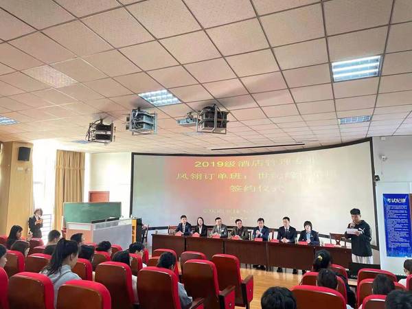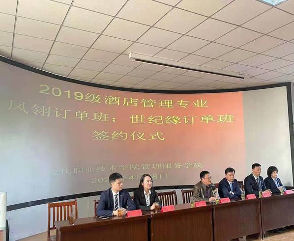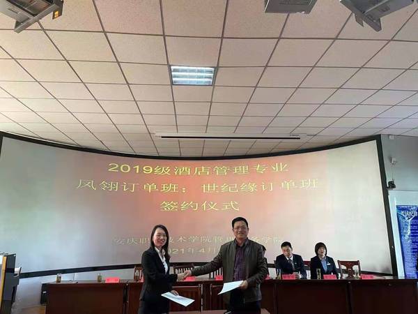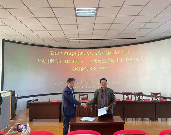 4月28日上午,安慶職業(yè)技術(shù)學(xué)院管理服務(wù)學(xué)院在3號教學(xué)樓216教室舉行校企業(yè)合作酒店管理專業(yè)“鳳翎訂單班”和“世紀(jì)緣訂單班”簽約儀式。管理服務(wù)學(xué)院副院長楊厚松、企業(yè)方代表、酒店管理專業(yè)部分教師和冠名班全體學(xué)生參加了此次簽約儀式。儀式由院長助理兼酒店管理專業(yè)建設(shè)負(fù)責(zé)人李敏老師主持。