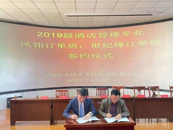 最后,校方代表?xiàng)詈袼煞謩e與安慶碧桂園鳳凰大酒店、安慶世紀(jì)緣國際大酒店負(fù)責(zé)人進(jìn)行了現(xiàn)場簽約。本次訂單班的成功簽約,為酒店管理專業(yè)下一步開展更多的校企聯(lián)合育人奠定了基礎(chǔ)。(文:李敏 圖:李光壽等 審核:楊厚松)