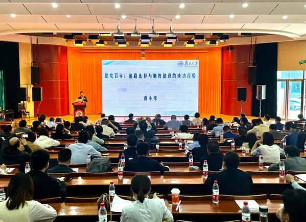 薛小榮以《建黨百年:道路選擇與制度建設(shè)的成功經(jīng)驗》為題,結(jié)合大量歷史事件,用生動通俗易懂的語言精辟透徹的講解了,新中國從“站起來”、“富起來”、“強(qiáng)起來”三個時代制度的選擇。生動闡述中國共產(chǎn)黨從國情出發(fā),三次歷史性的制度調(diào)整與功能優(yōu)化,既簡要概括了中國近代以來飛躍的歷史進(jìn)程,又深刻揭示了中國特色社會主義不斷開辟發(fā)展新境界的歷史意義。報告深入淺出,內(nèi)容豐富,進(jìn)一步增強(qiáng)了參會人員對中國共產(chǎn)黨人初心和使命的情感認(rèn)同、理性認(rèn)同、實踐認(rèn)同,對黨的奮斗歷程和制度建設(shè)有了更加清晰的認(rèn)識,在重溫黨的歷史過程中得到了新的教育和啟迪。(文:胡強(qiáng)圣 審稿:姚詠)