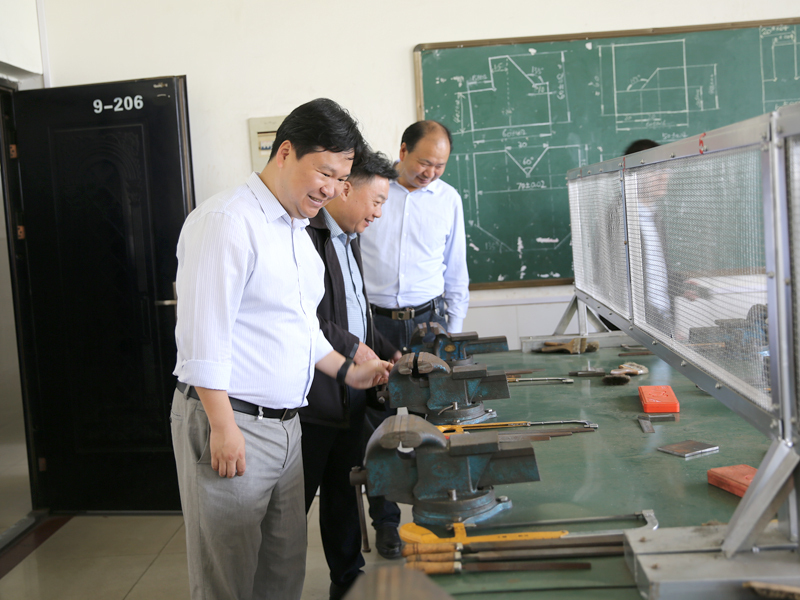 趙偉一行實(shí)地察看校容校貌并深入教學(xué)實(shí)訓(xùn)基地,了解學(xué)校辦學(xué)規(guī)模、基礎(chǔ)設(shè)施、專業(yè)設(shè)置、實(shí)習(xí)實(shí)訓(xùn)、招生就業(yè)、教師隊(duì)伍建設(shè)、技能人才培養(yǎng)等情況。