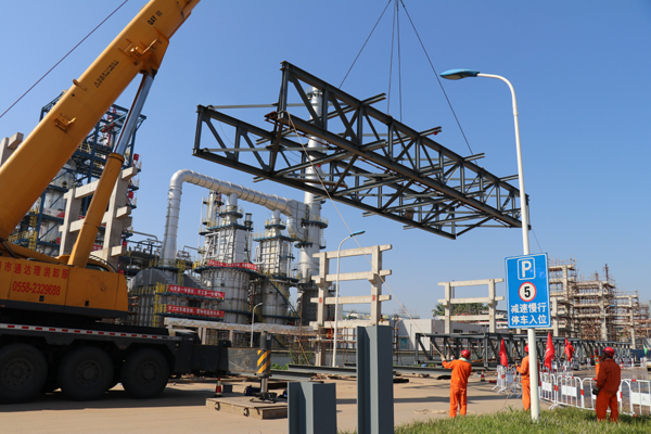 8828工程自安慶長江沙漠洲新建危化品碼頭至廠區(qū)罐區(qū)。包括管廊鋼結(jié)構(gòu)制作安裝、管道安裝和配套的電氣、電信、控制儀表安裝工程及其他公用工程、配套設(shè)施等。自開工伊始,盈創(chuàng)公司就明確了爭創(chuàng)優(yōu)質(zhì)工程的質(zhì)量目標,通過精心策劃,組建創(chuàng)優(yōu)小組,強化責(zé)任落實,對整個施工過程進行了總體布局與細節(jié)把控。管廊水平投影長度約5070米,公司完成了總重量為2600噸型鋼鋼桁架制作安裝,總長度150千米、總重量7000噸管線的架設(shè)安裝,管道焊接拍片一次合格率達到97.3%,工程質(zhì)量達到同行業(yè)先進水平。該工程項目的投運徹底消除了長輸管線安全隱患,有效改善了安慶石化的操作和作業(yè)環(huán)境,提升了新的原料和成品油出廠水路管線的安全。
