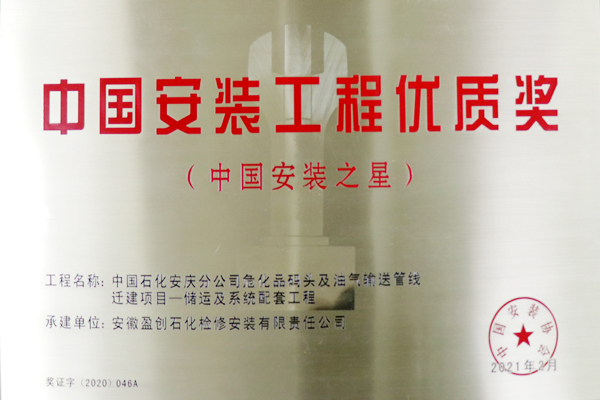 4月22日,2019-2020年度中國安裝工程優(yōu)質(zhì)獎(中國安裝之星)頒獎大會在濟南舉行,由盈創(chuàng)公司承建的中國石化安慶分公司?;反a頭及油氣輸送管線遷建項目——儲運及系統(tǒng)配套工程 (以下簡稱8828工程)喜獲中國安裝工程優(yōu)質(zhì)獎——“中國安裝之星”,填補了公司安裝工程領(lǐng)域該獎項的空白。公司機動部經(jīng)理何忠民獲中國安裝工程優(yōu)質(zhì)獎(中國安裝之星)工程項目經(jīng)理特別榮譽。