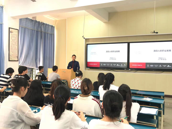 6月9日下午,安慶職業(yè)技術(shù)學(xué)院管理服務(wù)學(xué)院酒店管理專業(yè)2021年皖蘇學(xué)院“鳳翎”訂單班企業(yè)課堂在3號(hào)教學(xué)樓214教室正式開課。首次課程由碧桂園皖蘇區(qū)域運(yùn)營總監(jiān)李海龍主講,管理服務(wù)學(xué)院李敏老師主持開課儀式,訂單班全體學(xué)員參加了學(xué)習(xí)。