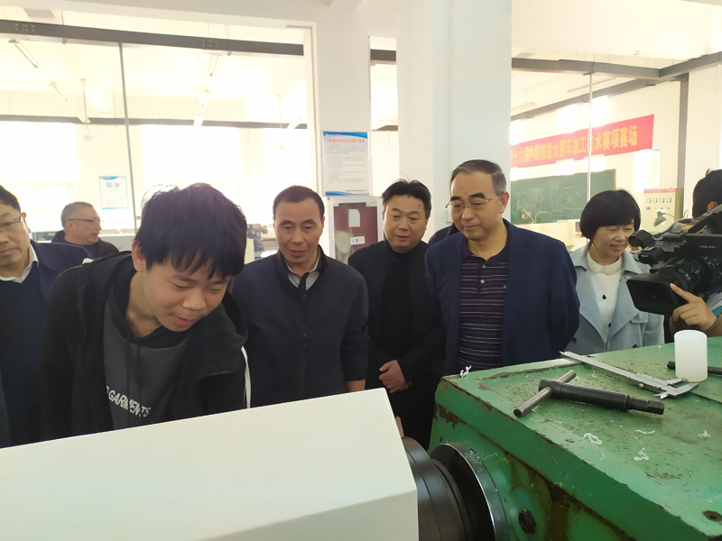 郭玉晟一行實地察看校園環(huán)境,邊走邊聽取了學(xué)校負(fù)責(zé)人有關(guān)工作匯報,了解了醫(yī)藥健康實訓(xùn)基地項目規(guī)劃建設(shè)有關(guān)情況,并深入教學(xué)實訓(xùn)基地,詳細了解學(xué)校辦學(xué)規(guī)模、基礎(chǔ)設(shè)施、專業(yè)設(shè)置、實習(xí)實訓(xùn)、招生就業(yè)、疫情防控等情況。