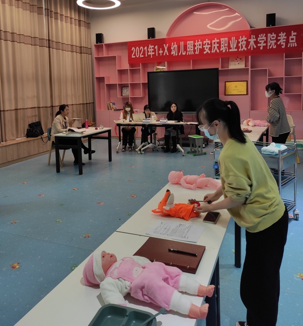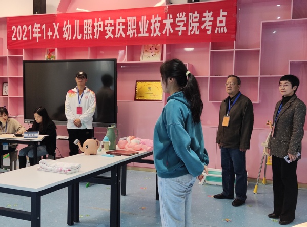 11月20-21日,安慶職業(yè)技術(shù)學(xué)院2021年1+X幼兒照護(hù)職業(yè)技能等級證書考試順利舉行。來自幼兒發(fā)展與健康管理專業(yè)的152名學(xué)生分三批次進(jìn)行理論和實操考試??键c負(fù)責(zé)人副校長譚維奇帶領(lǐng)巡考組成員檢查了整個考試工作。
