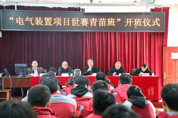 2021年11月11日上午,安徽安慶技師學(xué)院“電氣裝置項目世賽青苗班”開班儀式在教學(xué)樓一樓會議室舉行。會議由技師學(xué)院副院長徐波主持,學(xué)院院長李克讓、相關(guān)部門負責(zé)人、青苗班全體任課教師及學(xué)生參加會議。