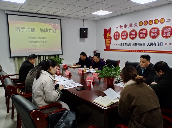 會(huì)上,老峰鎮(zhèn)黨委副書記余久云介紹了老峰鎮(zhèn)、新豐社區(qū)黨建活動(dòng)有關(guān)情況。新豐社區(qū)黨支部負(fù)責(zé)同志介紹了校區(qū)共建一居一品“四民同創(chuàng)筑新風(fēng)”品牌活動(dòng)有關(guān)方案。校團(tuán)委書記陳穎表示安慶職院共青團(tuán)組織積極響應(yīng)構(gòu)建鼓勵(lì)團(tuán)員向社區(qū)(村)和“青年之家”報(bào)到的工作機(jī)制,并就安慶職院共青團(tuán)社會(huì)實(shí)踐、志愿服務(wù)品牌活動(dòng)、學(xué)生社團(tuán)文化建設(shè)等和社區(qū)黨建有關(guān)聯(lián)的相關(guān)工作情況做了交流;同時(shí)表示發(fā)揮學(xué)校相關(guān)資源優(yōu)勢(shì),積極引導(dǎo)團(tuán)員青年關(guān)注社會(huì)、走近基層,加強(qiáng)團(tuán)員青年社會(huì)責(zé)任感教育,為社區(qū)發(fā)展貢獻(xiàn)青年的智慧和力量。