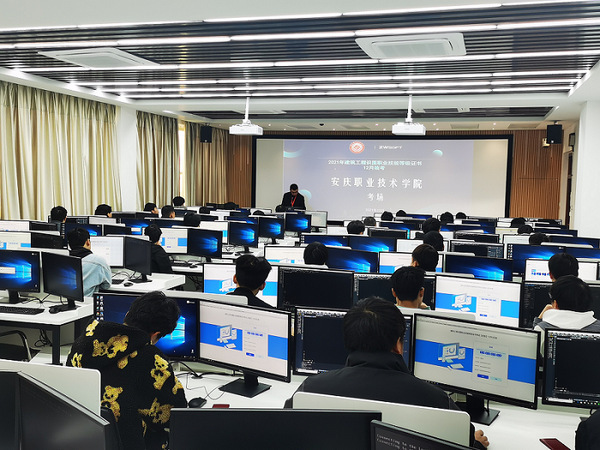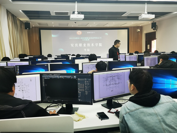 建筑工程識圖技能等級證書是安慶職業(yè)技術學院貫徹落實國家“1+X”技能證書制度確定組織學生參與的第二個X技能證書,考核分建筑圖紙識讀、建筑CAD制圖兩個部分,以一套小型建筑工程圖樣為載體,包含投影規(guī)則、制圖標準、建筑識圖、建筑構(gòu)造、施工圖繪制等內(nèi)容,要求學生在規(guī)定時間內(nèi)線上完成選擇題與繪圖上傳任務。
