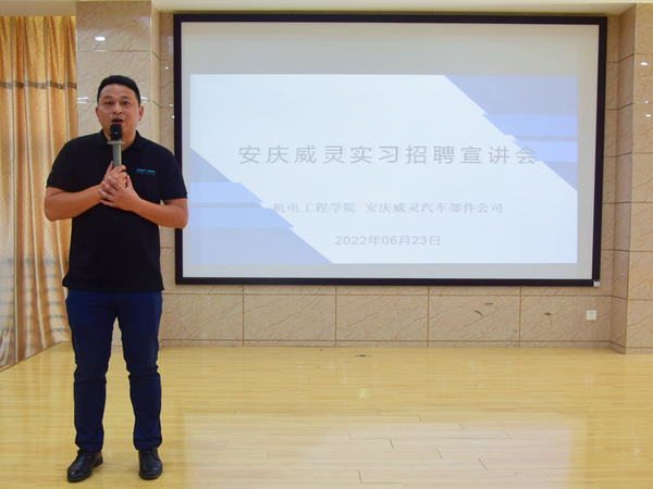 為進一步服務(wù)和支持安慶市重點招商引資項目,同時也為20級學生提供高質(zhì)量就業(yè)實習崗位,促進高質(zhì)量就業(yè),6月23日下午,安慶職業(yè)技術(shù)學院機電工程學院邀請安慶威靈汽車部件有限公司在1號教學樓216教室為2020級學生舉行實習宣講會。