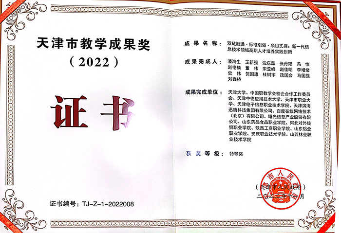 近日,天津市教育委員會發(fā)布了《天津市2022年職業(yè)教育教學(xué)成果獎授獎成果名單》,由天津大學(xué)牽頭,安慶職業(yè)技術(shù)學(xué)院參與的“雙鏈融通·體系引領(lǐng)·項目支撐:新一代信息技術(shù)領(lǐng)域高職人才培養(yǎng)實踐創(chuàng)新”項目獲天津市2022年職業(yè)教育教學(xué)成果獎特等獎,并被推薦至教育部參加2022年職業(yè)教育國家級教學(xué)成果獎評審。