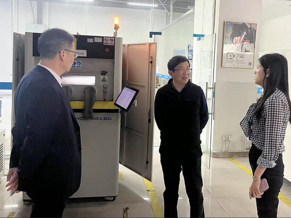 在企業(yè)負(fù)責(zé)人的引導(dǎo)下,一行四人走進(jìn)加工車(chē)間,了解到企業(yè)生產(chǎn)現(xiàn)狀、制作工藝以及3D打印成品的流程等細(xì)節(jié)。并與企業(yè)負(fù)責(zé)人面對(duì)面,在人才培養(yǎng)、專(zhuān)業(yè)建設(shè)、實(shí)習(xí)實(shí)訓(xùn)等方面進(jìn)行交流,雙就進(jìn)一步強(qiáng)化校企合作打成了初步意見(jiàn)。