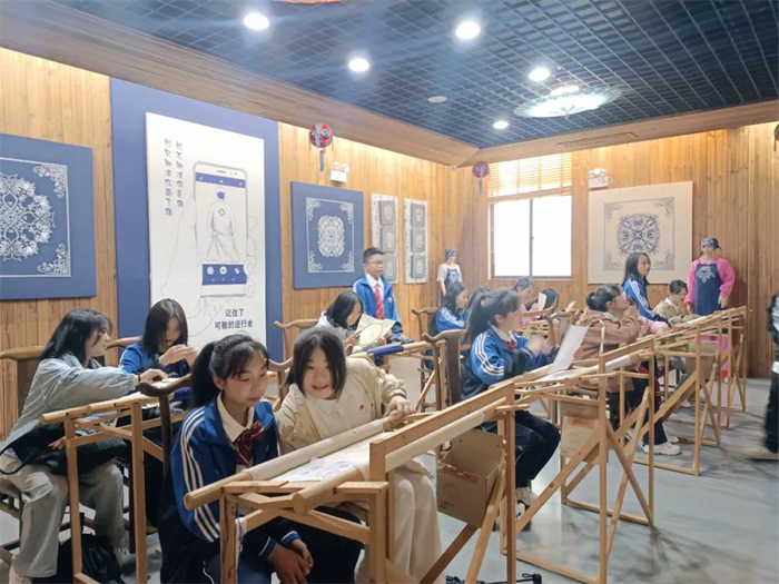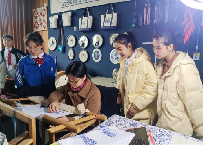 “飛針織女巧挑花,青白案圖雅俗夸?!蓖艋?,古樸、典雅,散發(fā)出濃郁的鄉(xiāng)土氣息。非遺文化研學(xué),青年學(xué)子在領(lǐng)略家鄉(xiāng)傳統(tǒng)工藝的美學(xué)魅力、領(lǐng)悟工匠精神過程中,讓文化自信根植于心,使熱愛中華優(yōu)秀傳統(tǒng)文化的種子在心中生根發(fā)芽。
