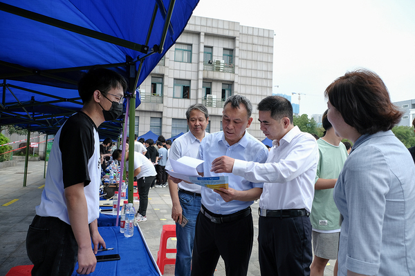 校黨委書記童宏葵、黨委副書記李克讓、安慶市人力資源和社會(huì)保障局副局長(zhǎng)方敏、市公共就業(yè)創(chuàng)業(yè)服務(wù)中心主任王中群,到雙選會(huì)現(xiàn)場(chǎng)指導(dǎo),了解學(xué)生們的求職意向和企業(yè)的用工需求。