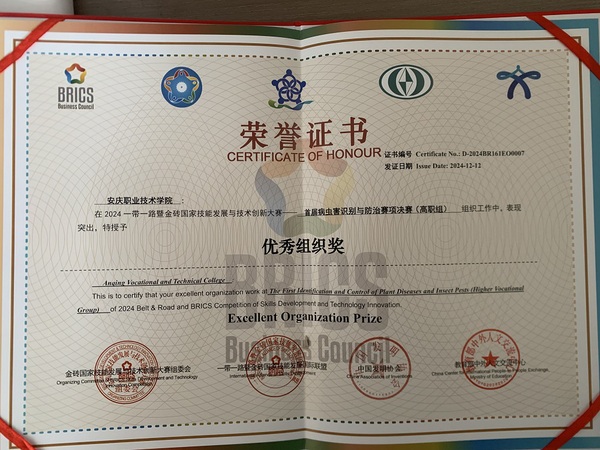 近日,“一帶一路”暨金磚國家技能發(fā)展與技術(shù)創(chuàng)新大賽,首屆數(shù)智農(nóng)業(yè)種植技術(shù)創(chuàng)新賽項和首屆病蟲害識別與防治賽項比賽結(jié)果揭曉。安慶職業(yè)技術(shù)學(xué)院農(nóng)林與服裝學(xué)院植物保護(hù)與檢疫技術(shù)專業(yè)12名學(xué)生共斬獲三個二等獎、兩個三等獎。