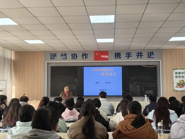 揭牌儀式結(jié)束后,付玉蘭教授為在場師生帶來了一場精彩紛呈的徽派插花藝術(shù)專題講座。她從徽派插花藝術(shù)的歷史淵源、藝術(shù)特色、創(chuàng)作技巧等方面進(jìn)行了深入淺出的講解,讓師生們對這一傳統(tǒng)藝術(shù)有了更加全面的認(rèn)識。(文:卞 清 圖:徐基艷 審稿:劉 冬)