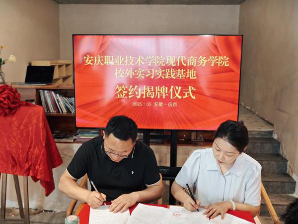 在“校、政、行、企”四方共同見證下,金啟勝與岳西縣金榜鄉(xiāng)村旅游開發(fā)有限公司董事長儲磊共同為“校外實習實踐基地建設”揭牌。雙方代表簽署了《校外實習實踐基地建設協議》,明確雙方將在學生實習、學生就業(yè)創(chuàng)業(yè)、開展課程實踐教學、產學研等方面開展長期合作。