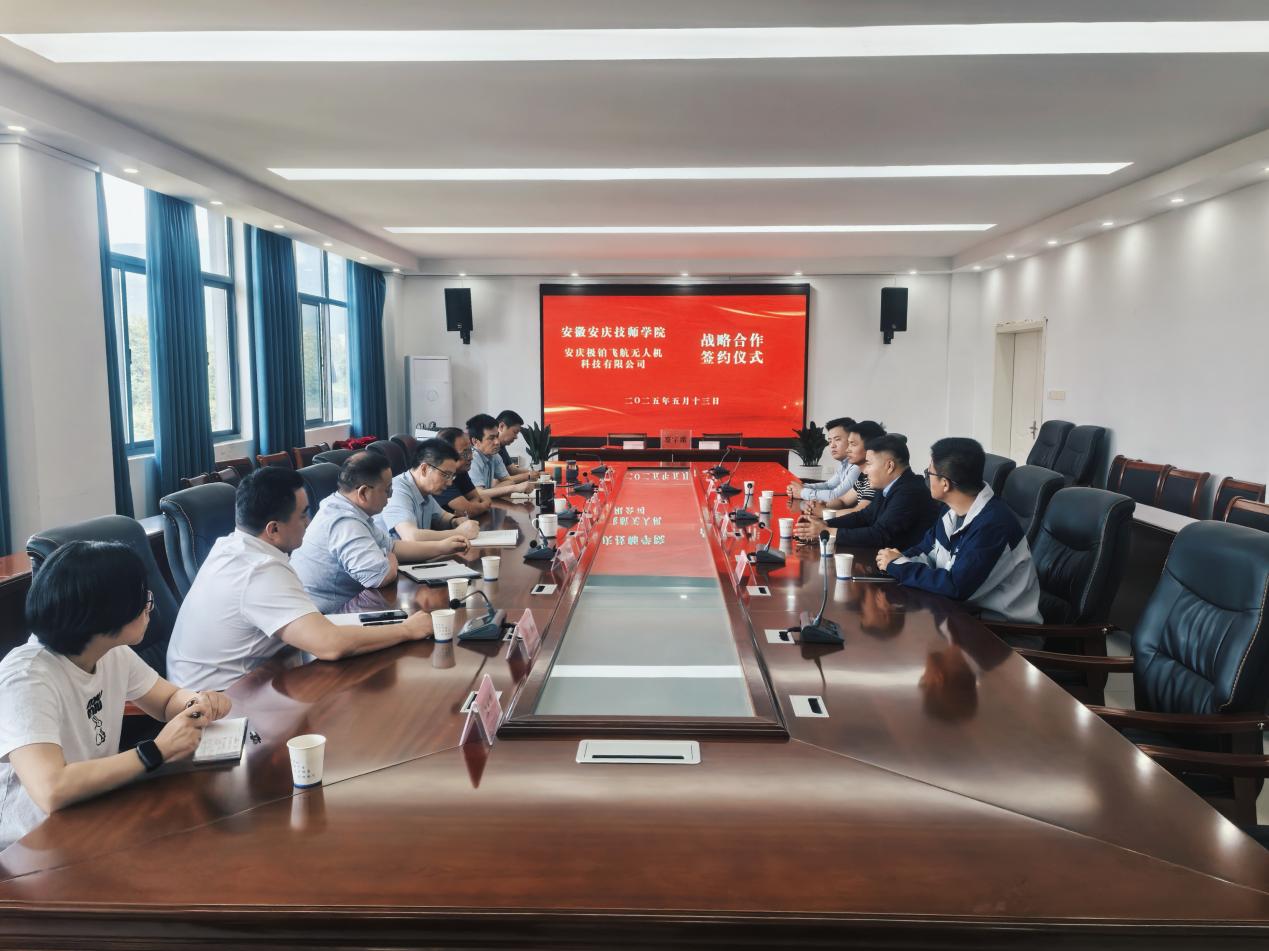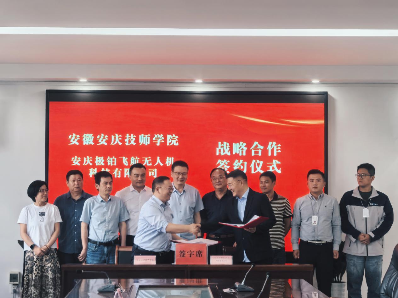 為推動無人機技術領域高素質人才培養(yǎng),5月13日,安慶技師學院與安慶極鉑飛航無人機科技有限公司,正式簽署戰(zhàn)略合作協(xié)議,雙方將圍繞產教融合、人才共育等方向開展深度合作,共同探索無人機技術應用領域的創(chuàng)新發(fā)展路徑。學院黨委副書記、院長徐英武攜院領導班子成員及相關部門負責人,安慶極鉑飛航無人機科技有限公司總經理胡應日攜相關部門負責人,出席此次簽約儀式。