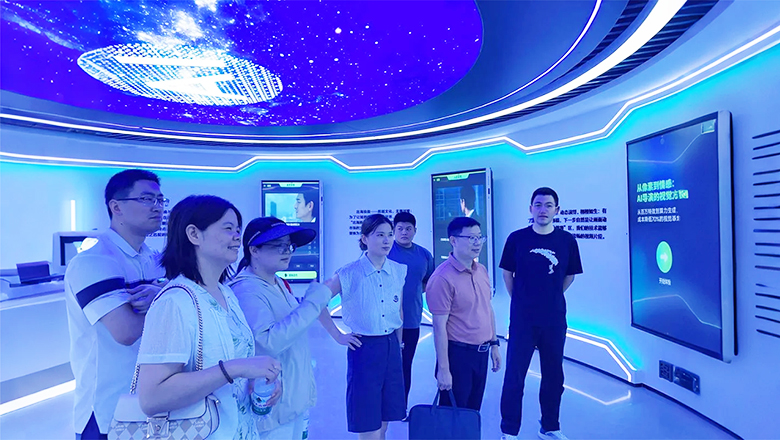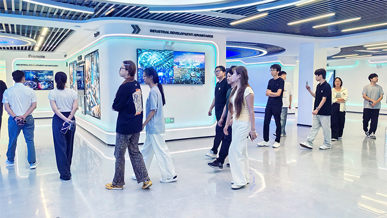 在高密度算力集群區(qū)域,調(diào)研組參觀了算力資源池。該集群不僅綠色節(jié)能,還具備千柜級擴(kuò)容能力,為未來數(shù)字經(jīng)濟(jì)發(fā)展提供了有力支撐。在智慧中樞控制展廳,師生體驗(yàn)了智能神經(jīng)中樞系統(tǒng)、AI預(yù)測性運(yùn)維平臺以及三位一體安防體系,切實(shí)感受到數(shù)字科技在城市管理與安全保障中的深度應(yīng)用。