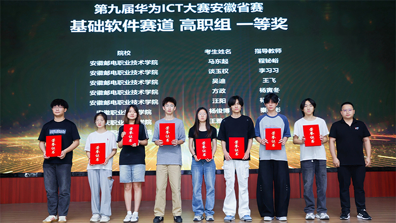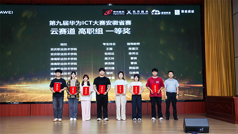 6月13日,第九屆華為ICT大賽安徽省賽頒獎典禮暨華為ICT人才聯(lián)盟雙選會在安徽工業(yè)經(jīng)濟職業(yè)技術學院舉行。安徽省教育廳高教處三級調研員梅梅到會指導。安慶職業(yè)技術學院信息技術學院學生在此次大賽上獲一等獎3項,指導教師、獲獎學生代表應邀出席頒獎典禮和雙選會。