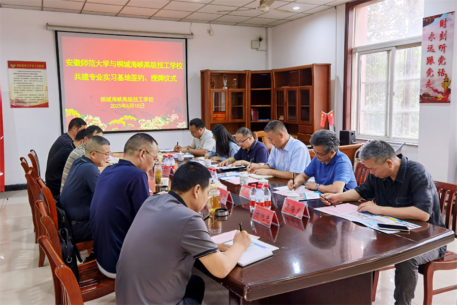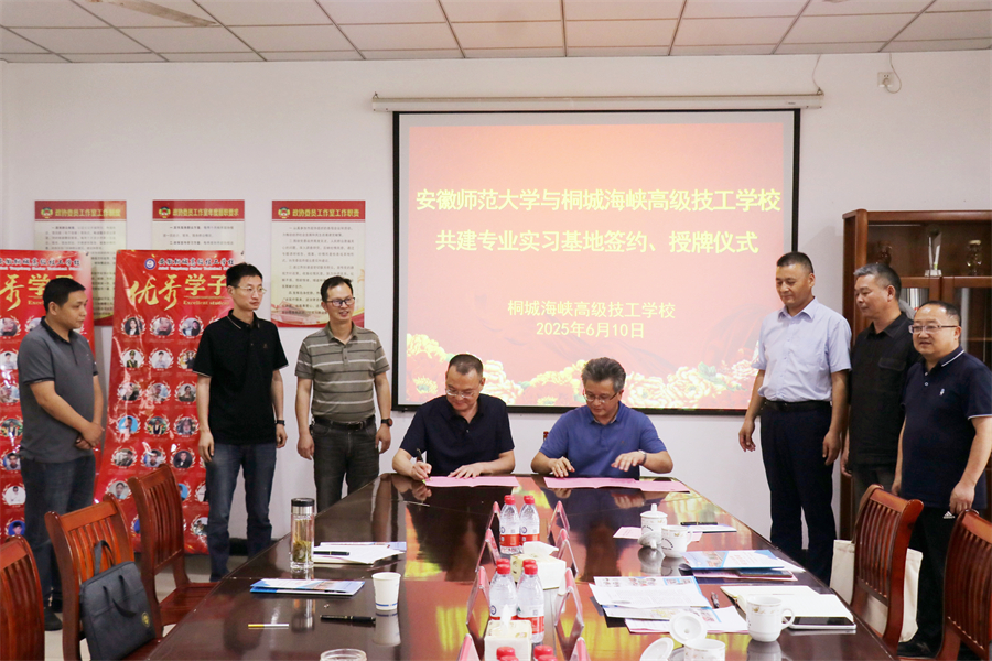 會(huì)上舉行了隆重的簽約授牌儀式,安師大生態(tài)與環(huán)境學(xué)院院長(zhǎng)胡好遠(yuǎn)與桐城海峽高級(jí)技工學(xué)校校長(zhǎng)郭昌盛分別代表雙方簽署合作協(xié)議,并進(jìn)行了現(xiàn)場(chǎng)授牌。