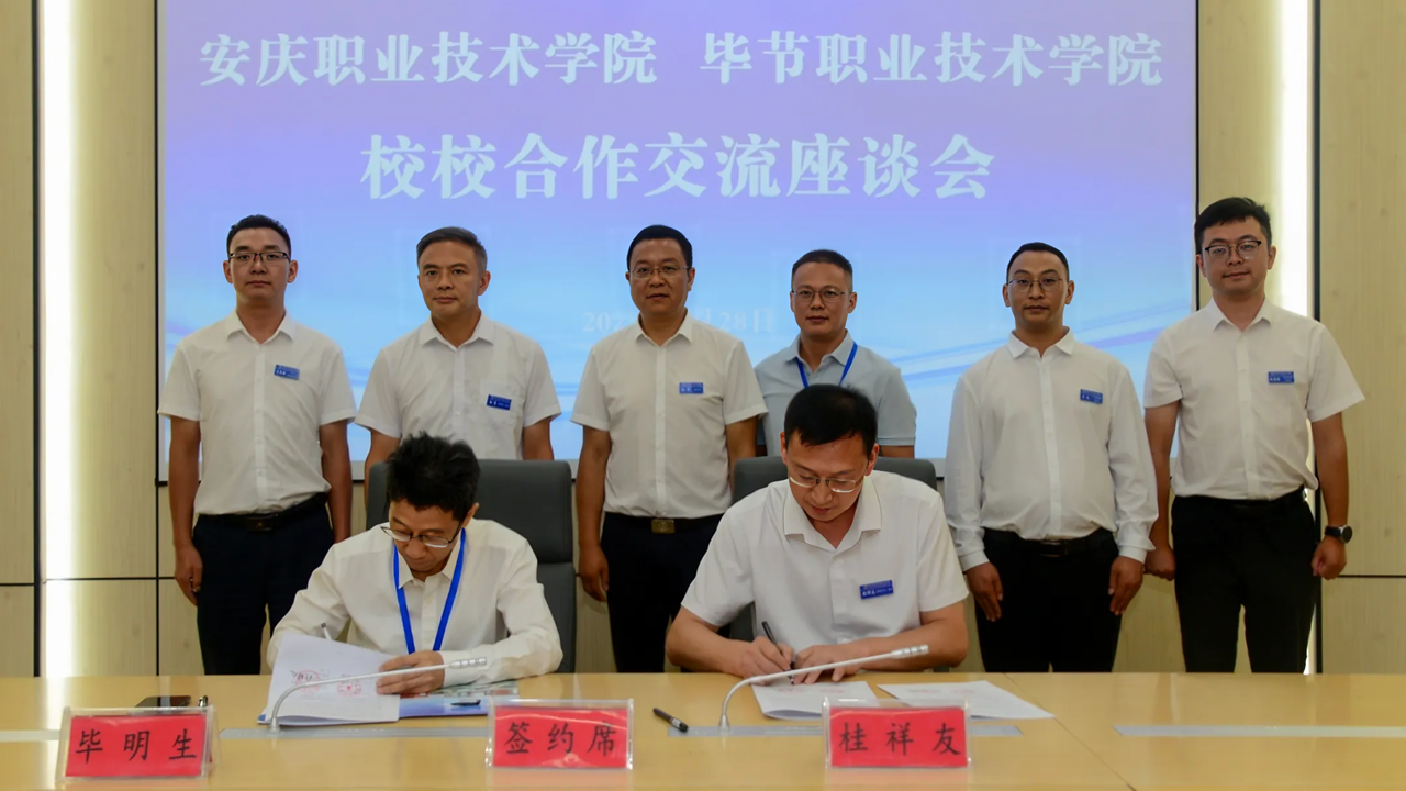 8月28日至29日,安慶職業(yè)技術(shù)學(xué)院校長畢明生應(yīng)邀赴畢節(jié)職業(yè)技術(shù)學(xué)院參加2025中國-東盟教育交流周“校旅結(jié)合·職業(yè)教育助力鄉(xiāng)村振興”活動(dòng),并與畢節(jié)職業(yè)技術(shù)學(xué)院簽署框架合作協(xié)議。