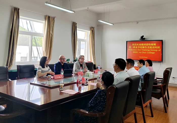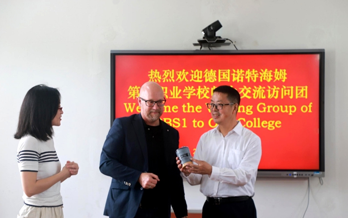 座談會上,李海軍校長對德國師生的到訪表示熱烈歡迎。他回顧了兩校自2009年締結(jié)友好關(guān)系以來,始終秉持開放包容、互學(xué)互鑒的精神,通過學(xué)術(shù)研討、師生互訪、技術(shù)交流等多種形式不斷深化合作,已成為中德職業(yè)教育領(lǐng)域交流合作的一個生動縮影。他強(qiáng)調(diào),在中國大力推進(jìn)職業(yè)教育高質(zhì)量發(fā)展、深入實(shí)施“職教出?!睉?zhàn)略的背景下,該校高度重視國際化合作,期待雙方進(jìn)一步拓展在專業(yè)共建、師資培養(yǎng)與學(xué)生聯(lián)合培養(yǎng)等方面的合作空間,共同為中德職教發(fā)展貢獻(xiàn)更多務(wù)實(shí)成果。德國BBS1副校長Tammen Sven在講話中對理工學(xué)校的熱情接待表示衷心感謝,同時介紹了德國諾特海姆第一職業(yè)學(xué)校的發(fā)展近況,并提出了深化兩校交流合作的積極展望。會后,雙方還代表兩?;ベ浟硕Y物。